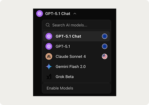 Yes. You can use models from OpenAI, Anthropic, Google, Meta, Mistral, or your own APIs and switch between them instantly based on accuracy, cost, or compliance requirements.