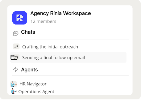 - Agents: reusable AI co‑pilots on company data (support, marketing, ops)