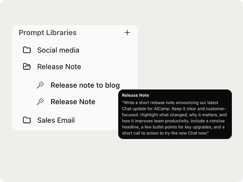 Everyone gets instant access to approved, high-quality prompts right inside their AI workspace.